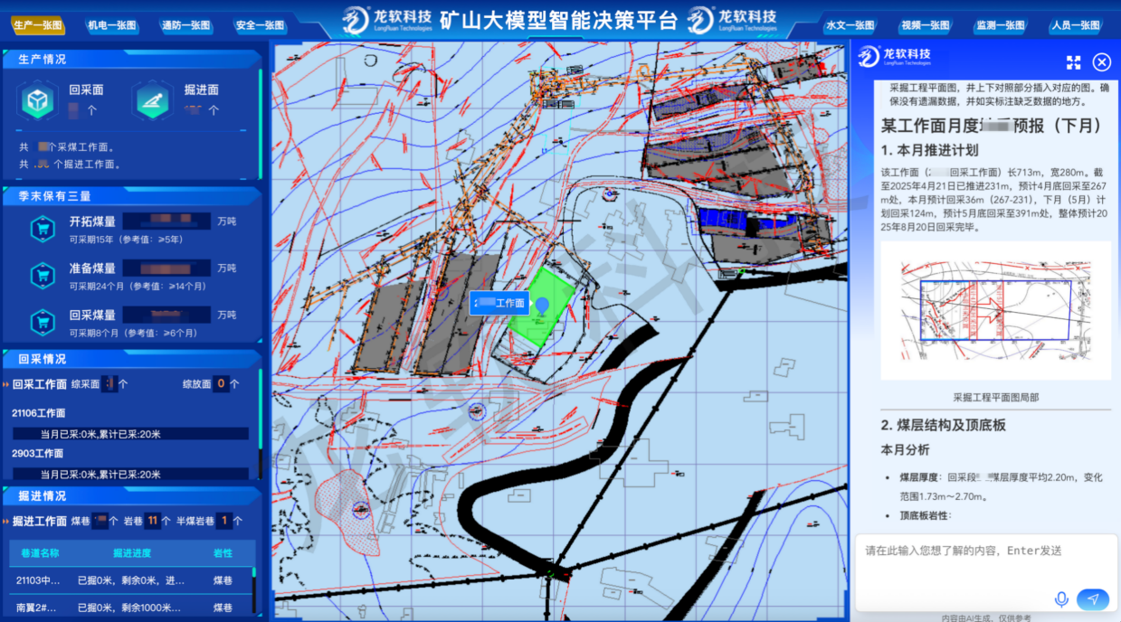 1竞技官网时空大模型是公司依托多年的AI技术研发和矿山行业应用经验积累,基于已授权的数项发明专利,融合包括DeepSeek在内的先进通用大语言模型和自主研发的时空智能技术,研发推出的跨越感知、认知、执行等多维度、多模态等人工智能技术体系。该技术解决了大模型在矿山行业知识嵌入不足、无法处理矢量时空数据等短板,支持接入矿井内部各类安全、生产、运输、经营等动态数据以及矿井自有技术资料、专家经验等知识,实现基于时空大模型的智能决策分析系统,提供面向矿山各类应用场景的视觉智能识别、专业知识问答、图形智能处理、业务综合决策等能力,其中视频AI分析已覆盖9大类、86小类场景模型,并结合多智能体封装管控业务流程,实现矿山生产调度、安全评价、辅助决策相关的“智能看图、智能问数、智能监控、智能分析决策”等应用。