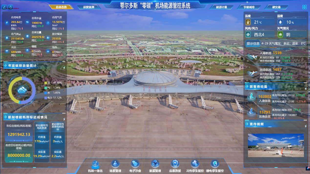 1竞技官网科技承建的鄂尔多斯零碳机场能源管控系统